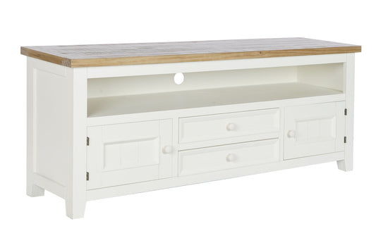 Mueble TV paulownia 134.5*35*55cm 2 caj blanco roto