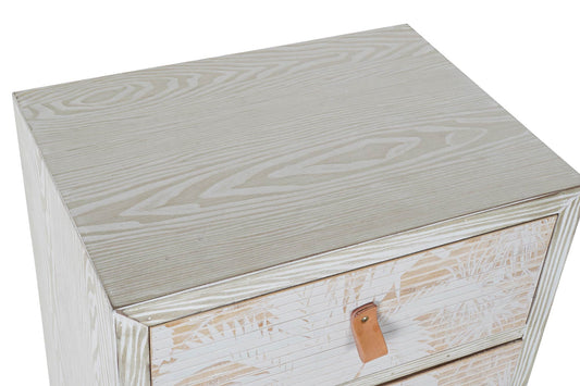 Cajonera madera bambu 48*35*74cm palmeras blanco