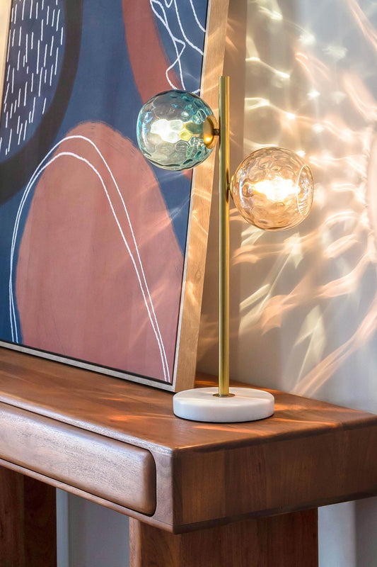 Lampara sobremesa marmol cristal 32*18*60cm bolas