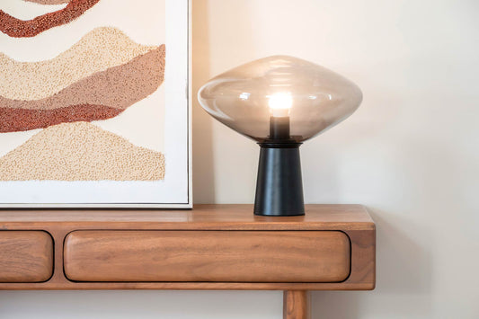 Lampara sobremesa cristal metal 35*35*58cm negro