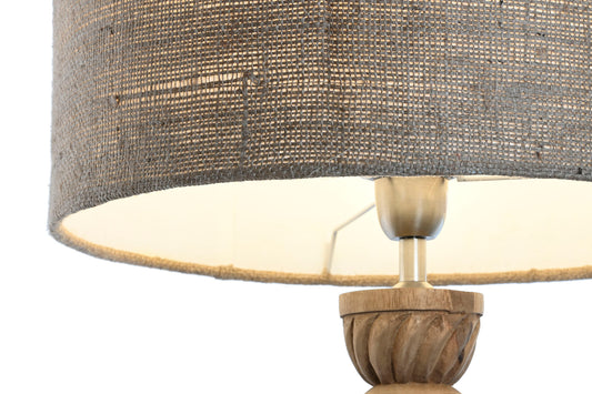 Lampara sobremesa madera yute 41*41*82cm tallada