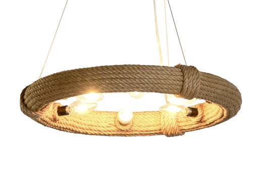 Lampara techo cuerda 48*48*10cm 6 bombillas marron