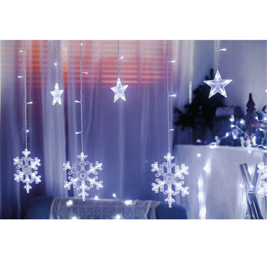 Cortina LED con estrellas y copos de nieve