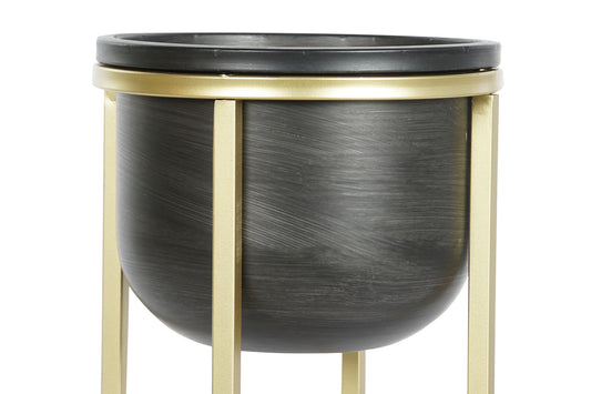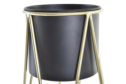 Macetero set 2 metal 36*36*58cm negro/dorado