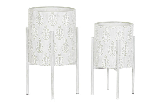 Macetero set 2 metal 35*35*70cm desgastado blanco
