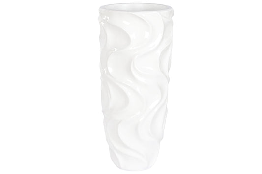 Macetero fibra vidrio 35*35*71cm ondas lacado blanco