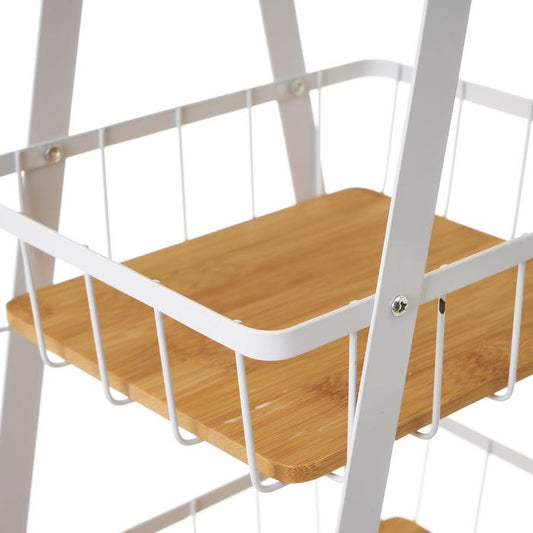 CESTA TRIPLE METAL-BAMBÚ BLANCO 30 X 20 X 60 CM