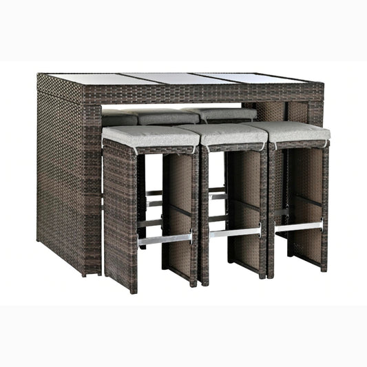 Mesa set 7 ratan sintetico acero 143*80*100cm