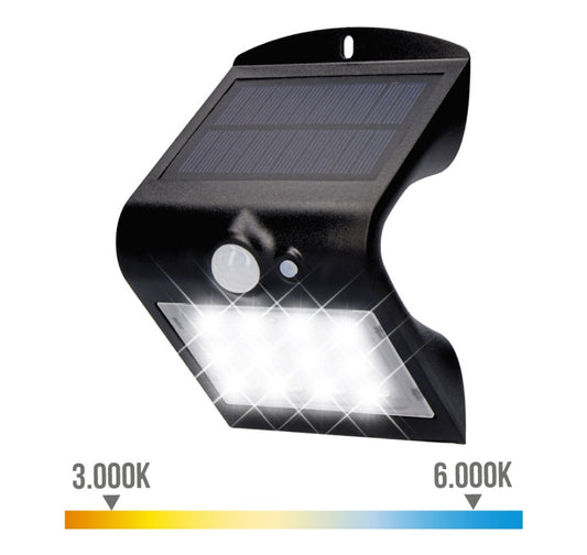 Aplique solar 1.8w 155lm 6500k con sensor negro