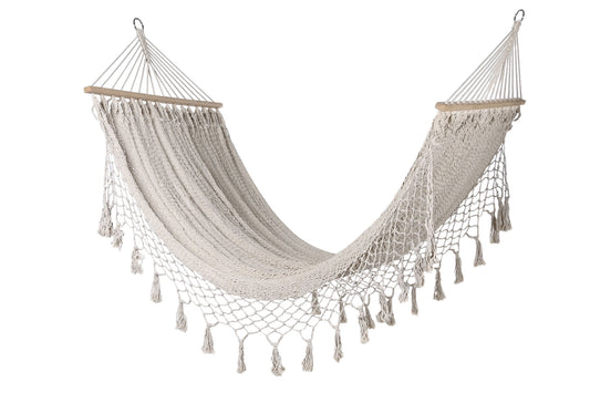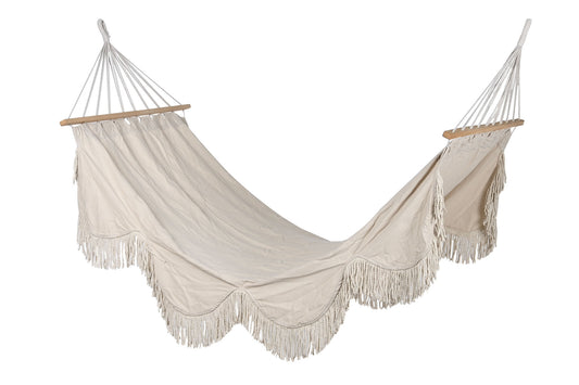 Hamaca algodon madera 200*100*5cm flecos blanco