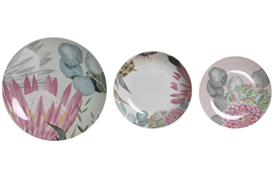 Vajilla set 18 porcelona 27*27*3cm flores multicolor