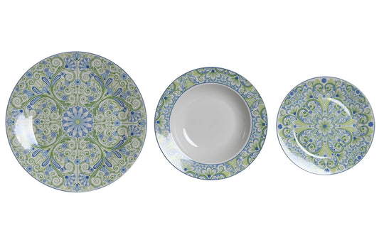 Vajilla set 18 porcelona 27*27*3cm azulejos verde
