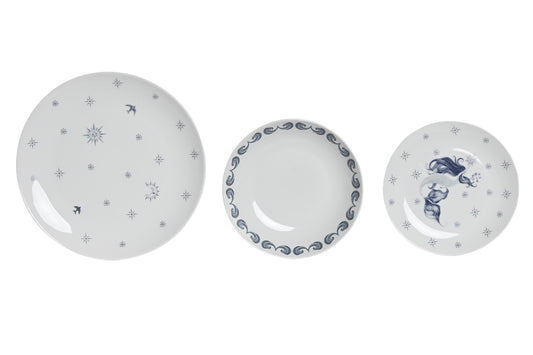 Vajilla set 18 porcelona 27*27*3cm azul