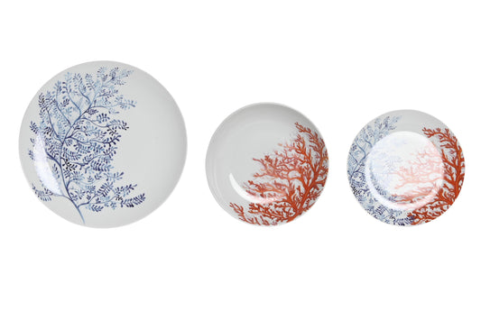 Vajilla set 18 porcelona 27*27*3cm coral azul