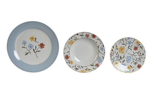 Vajilla set 18 porcelana 27*27*3cm floral azul