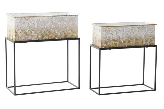 Macetero set 2 metal 36*36*58cm negro/dorado