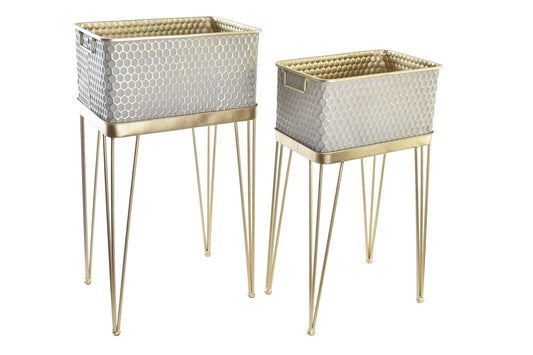 Macetero set 2 metal 40.5*31*76cm gris/dorado