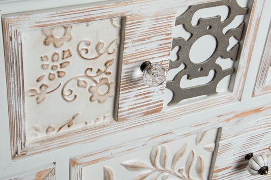 Cajonera madera 78*38*102cm desgastado blanco