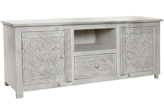 Mueble TV mango madera 151*40*60cm envejecido blanco