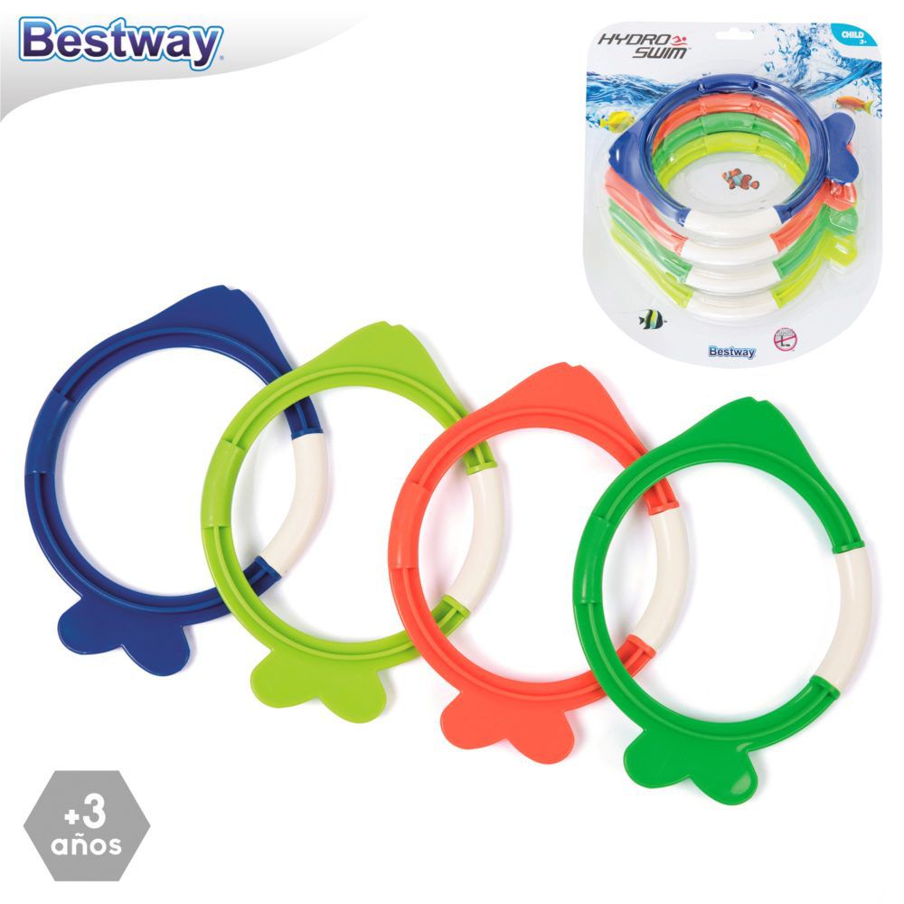 Juego De Piscina Bestway Lil Fish Con 4 Anillos De Buceo De Colores Azul Naranja Verde Para Niños