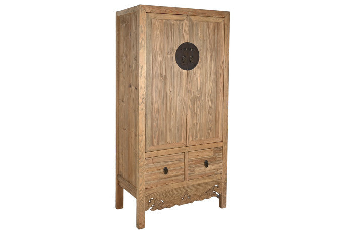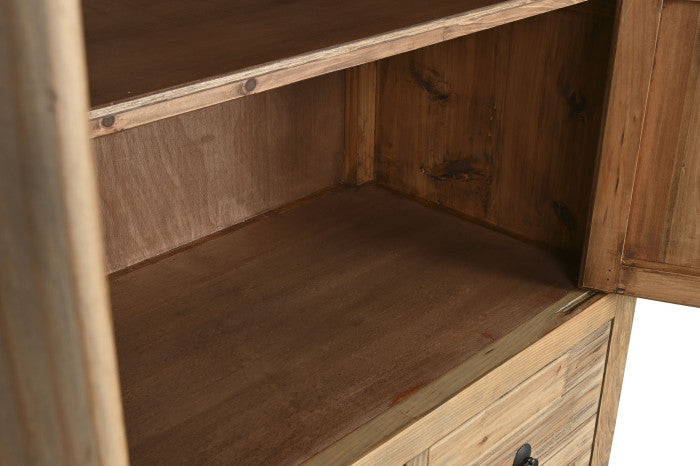 Armario fabricado en madera de abeto con detalles metálicos y acabado lacado en tono natural. Su diseño tallado aporta un estilo exótico y artesanal, ideal para ambientes rústicos, étnicos o vintage. Una pieza funcional y decorativa que añade carácter a cualquier estancia.