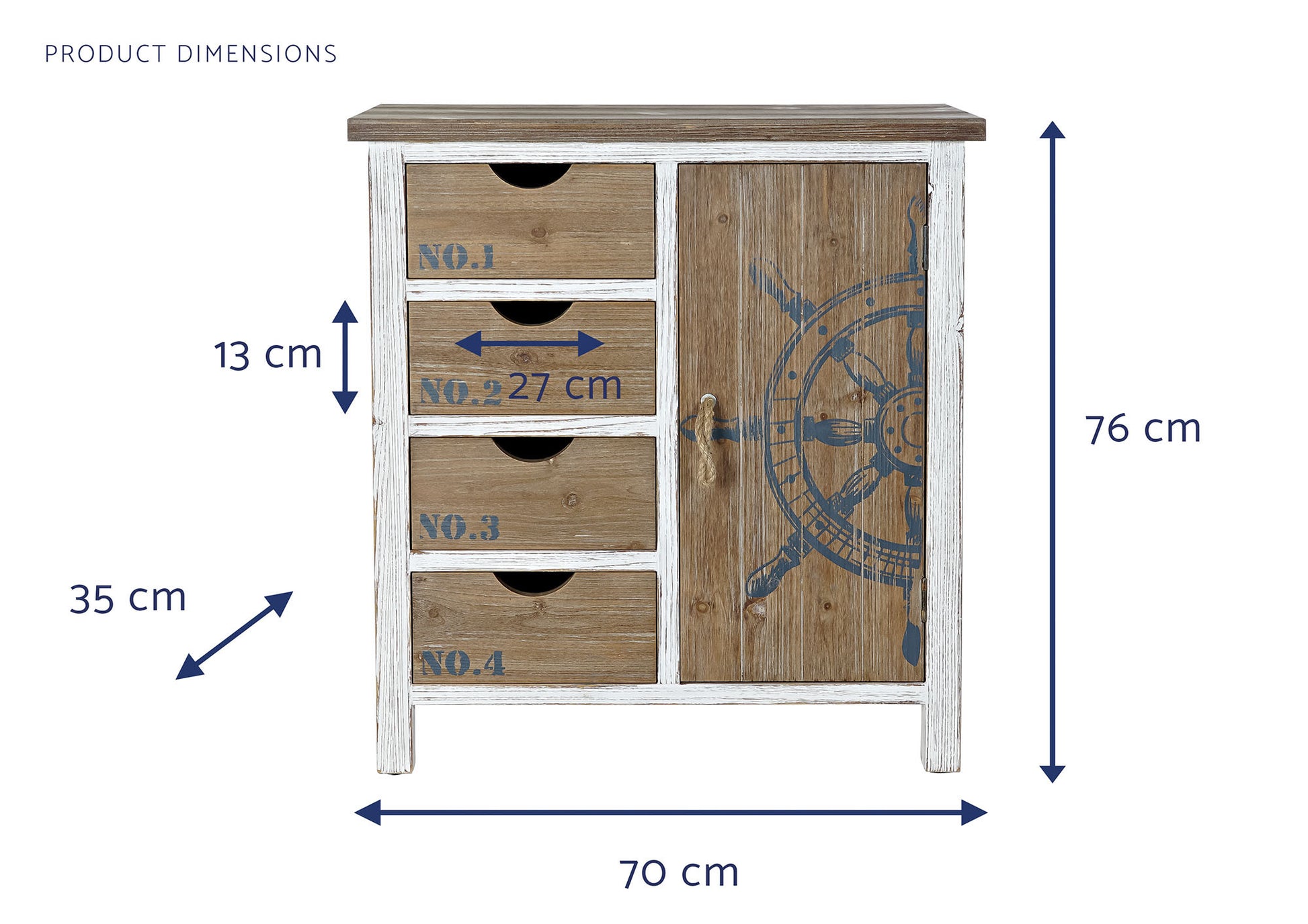 - DESCRIPCIÓN: CAJONERA ABETO 70X35X76,5 TIMON NATURAL