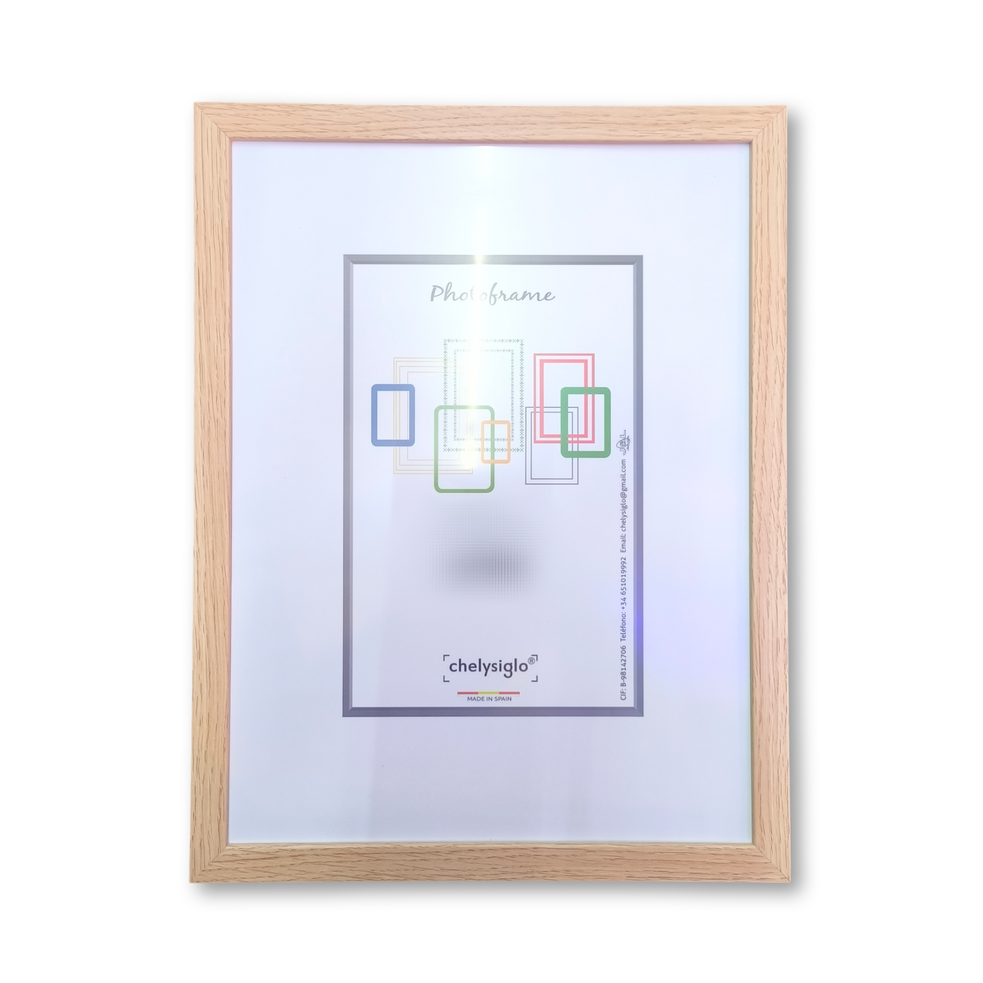 El marco está fabricado en madera MDF con color natural y tiene un perfil de marco fino de 20mm ancho x 12mm alto
