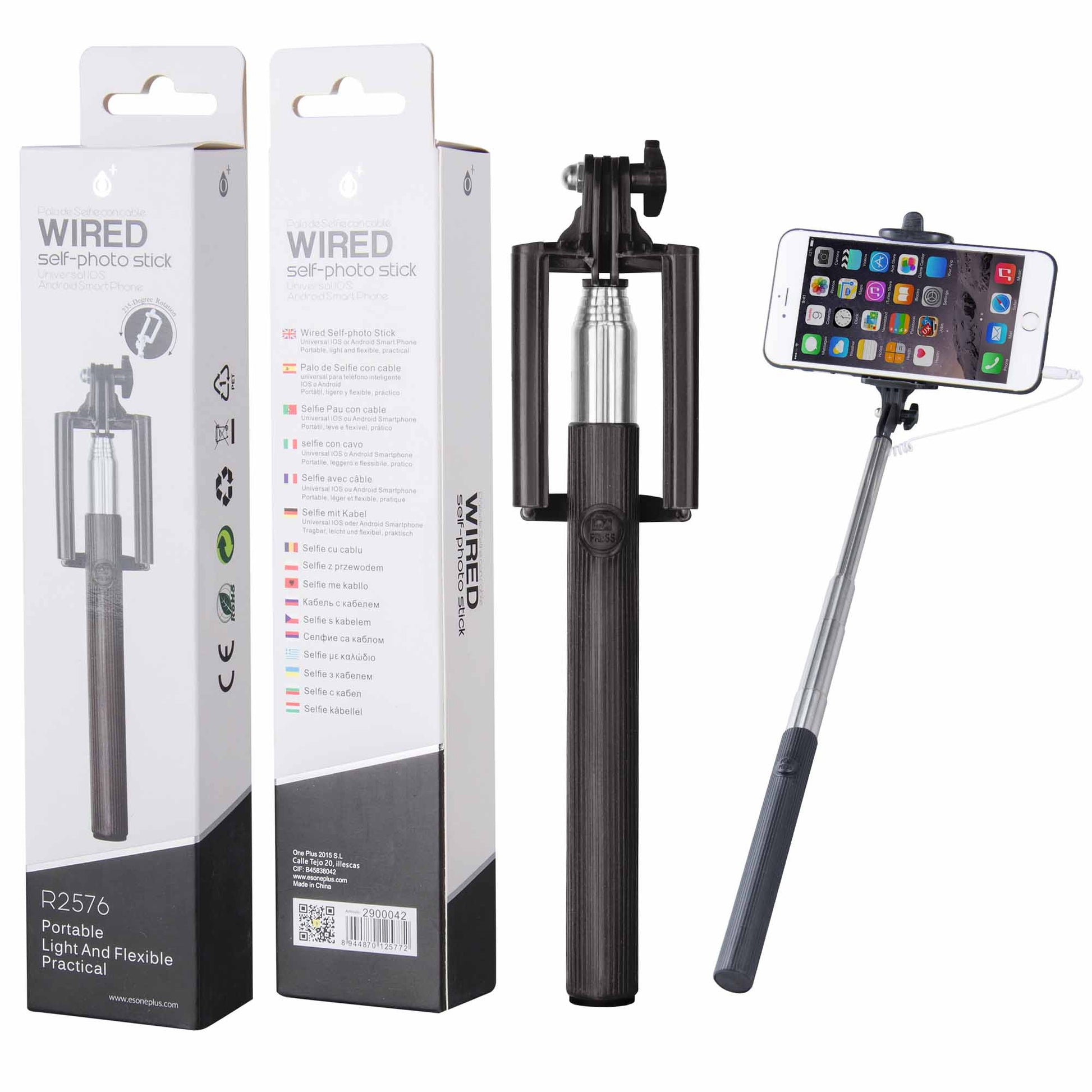 R2576 NE Palo Selfie Universal con Cable, Negro